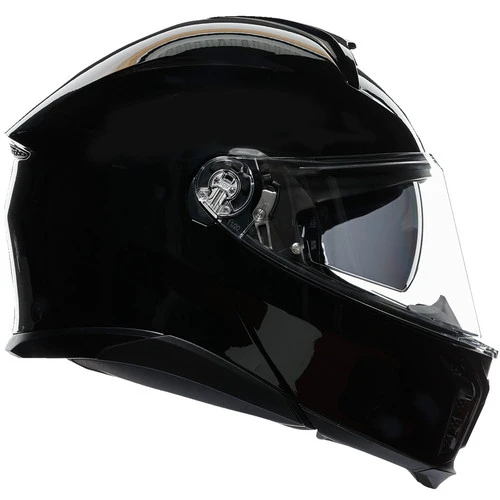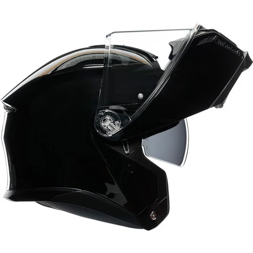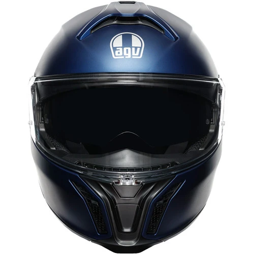 The helmet features four large adjustable air vents, on the top and on the chin, and 16 internal air extraction channels, to allow maximum modularity in ventilation and perfect air circulation in all conditions. AGV Tourmodular is developed to cut through the air, minimizing turbulence and helmet movement even at high speeds. This aerodynamic study derives from AGV’s experience in the most extreme competitive environments, like MotoGP™, which helps minimize fatigue on the rider’s neck and shoulders. At 130 km/h, cruising speed in highway travel, it has a dynamic weight of zero. The aerodynamics of the helmet are optimized even in open configuration. AGV Tourmodular can be used with the chinguard up in complete safety even on the move, exceeding the standards required by specific P/J homologation.