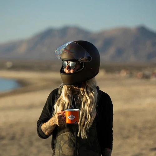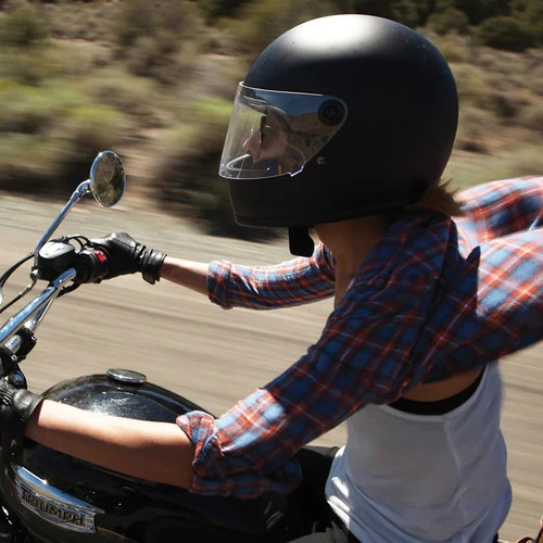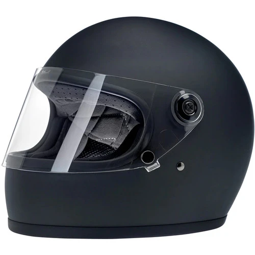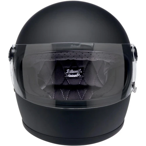 The Gringo S is built around Biltwell’s injection-molded ABS outer shell and features a shock-absorbing EPS liner with hand-stitched interior padding, cheek pads and BioFoam chin bar cushion for comfort.The Gringo S shield boasts awesome optics and simple hinge mechanics for high style and easy removal for replacement or cleaning. A snap and tab configuration on the rider’s left side offers speedy opening and secure closing to protect its wearer from road debris and wind irritation with little fanfare or complication.