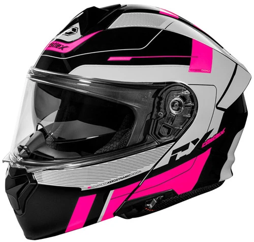 - Rider friendly drop down sun visor system.
