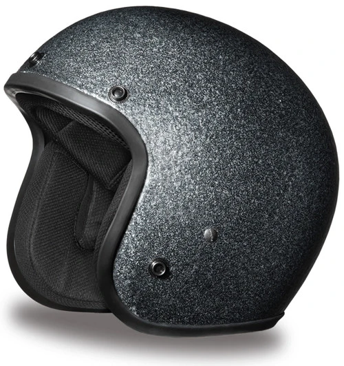 The Daytona Cruiser Gun Metal Flake, meets and exceeds DOT FMVSS 218 standards and it’s one of the smallest DOT 3/4 Shell Helmets ever made! The Slim Line Design offers a sleek, contoured shell that hugs your head. The custom formed interior give you X-treme comfort. With 3 different shell sizes, you’re sure to get that proportionate fit! Available with a removable, snap on gloss black bubble visor. Many more colors and designs available, in solid colors, graphics and more metal flake colors. Free mesh head wrap and cloth draw string bag included. Sizes for the Metal Flake colors ranges from XS-2XL.