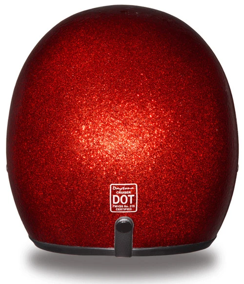 The Daytona Cruiser Red Metal Flake, meets and exceeds DOT FMVSS 218 standards and it’s one of the smallest DOT 3/4 Shell Helmets ever made! The Slim Line Design offers a sleek, contoured shell that hugs your head. The custom formed interior give you X-treme comfort. With 3 different shell sizes, you’re sure to get that proportionate fit! Available with a removable, snap on gloss black bubble visor. Many more colors and designs available, in solid colors, graphics and more metal flake colors. Free mesh head wrap and cloth draw string bag included. Sizes for the Metal Flake colors ranges from XS-2XL.
