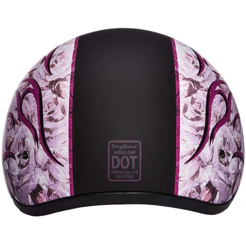 Daytona Skull Cap Slim Line Half Helmet Flames Pink