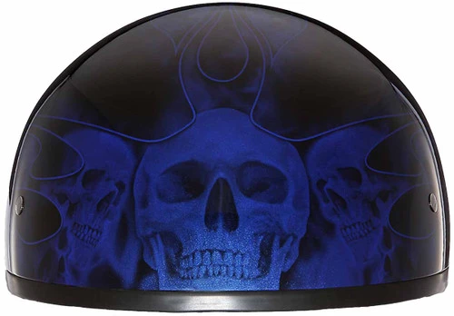 Daytona Skull Cap Slim Line Half Helmet Skull Flames Blue