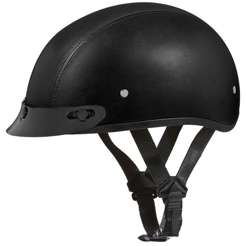 Daytona Skull Cap Slim Line Half Helmet with Visor Leather Covered