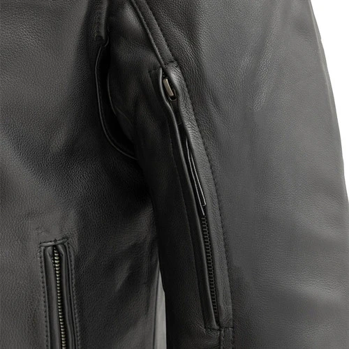 The Top Performer is a center zip style jacket with lots of vents to keep you cool on your motorcycle ride! It is crafted using diamond naked cowhide leather which is known for its exceptional durability and strength. Despite its durability, this leather can also be soft. The zip-out thermal liner allows you to adjust the level of insulation in your jacket based on the temperature and weather conditions. This versatility makes the jacket suitable for a range of temperatures and seasons. The inclusion of zippered sleeves with gussets allows you to adjust the fit of the sleeves to your preference. The zippers provide the flexibility to open or close the cuffs, accommodating different arm sizes or layering options. We even added zippered underarm vents and underarm gussets and grommets so the wearer can customize the airflow according to their needs. If the temperature rises, the vents can be opened to increase breathability. The inclusion of action back allows for greater freedom of movement, particularly in the shoulder and upper back areas. Whereas the side taps offer a means of adjusting the fit of the jacket. Additionally, the padded elbow detail provides protection and increases safety.