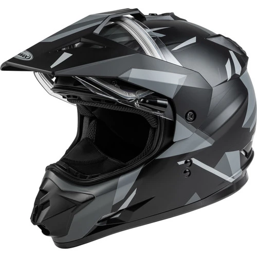 This GMAX® dual sport helmet is truly an all purpose helmet. With the ability to convert to a visor-less configuration and accept goggles while still having the shield down. The GM-11S helmet is loaded with features and designs normally found on other high priced helmets, but delivered to you at a true GMAX® competitive value.