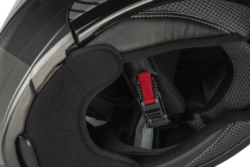 - One hand easy to use chin bar push to open mechanism designed for easy use with any gloves