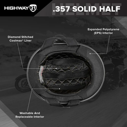 If it ain’t broke, then don’t fix it. The .357 by Highway 21 embodies simple style and function of the classic half helmet by focusing on strong durable materials mixed with a little Highway 21 flavor. A timeless design to serve day in and day out that will not spoil your seat time. Buy it, throw it on, log miles.