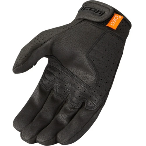 Built for summer riding, the ICON Airform™ motorcycle glove provides a refined aesthetic with sport riding performance. The chassis is comprised of Ax® Laredo, which provides both abrasion resistance and excellent hand-feel. Perforations within the Ax Laredo increase airflow and riding comfort. The D3O® knuckle insert helps promote backhand coverage while the hook & loop cuff closure provides a secure fit. Additional Ax Laredo palm overlays increase the lifespan of the Airform glove.