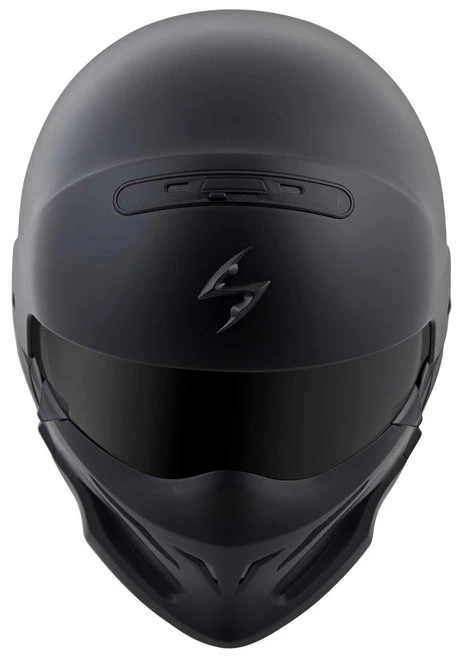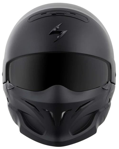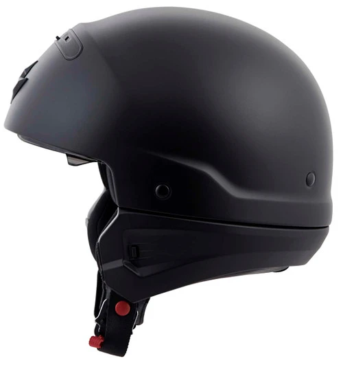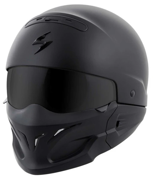 Meant to disrupt the norm, this radical design can be converted to work with any type of bike. We started with a half helmet and added an integrated drop- down sun visor for protection from sunlight. A rear comfort sleeve allows you to convert the helmet to a ¾ open-face and then attach the included front mask and you’ve got one, aggressive “bad ass” looking helmet.